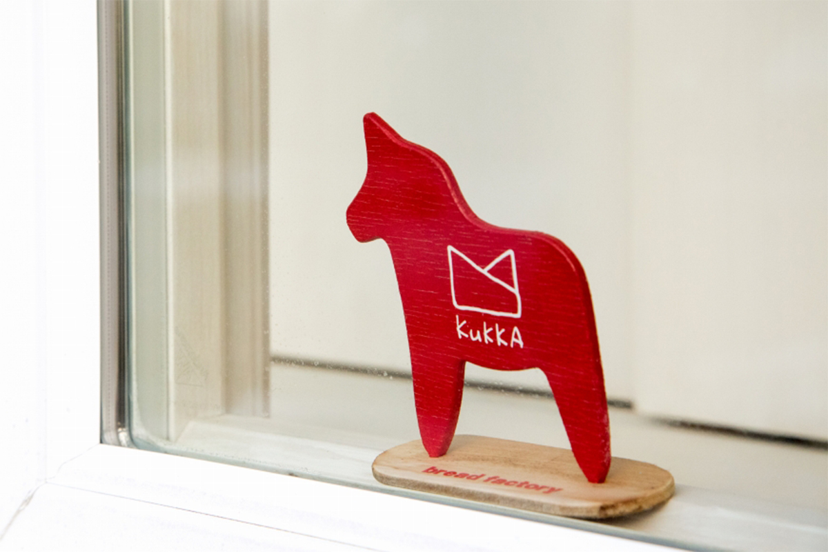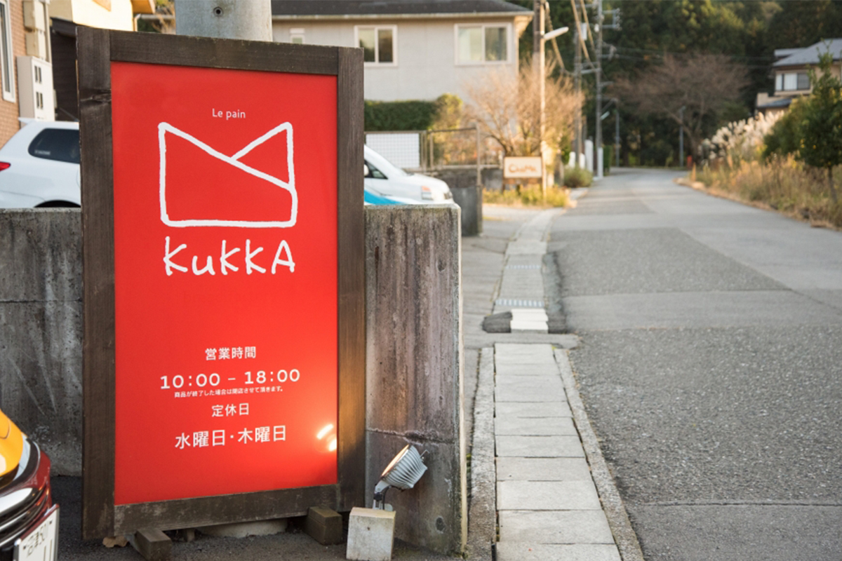 赤い看板が目印思わず立ち寄りたくなるおしゃれなパン屋さん。