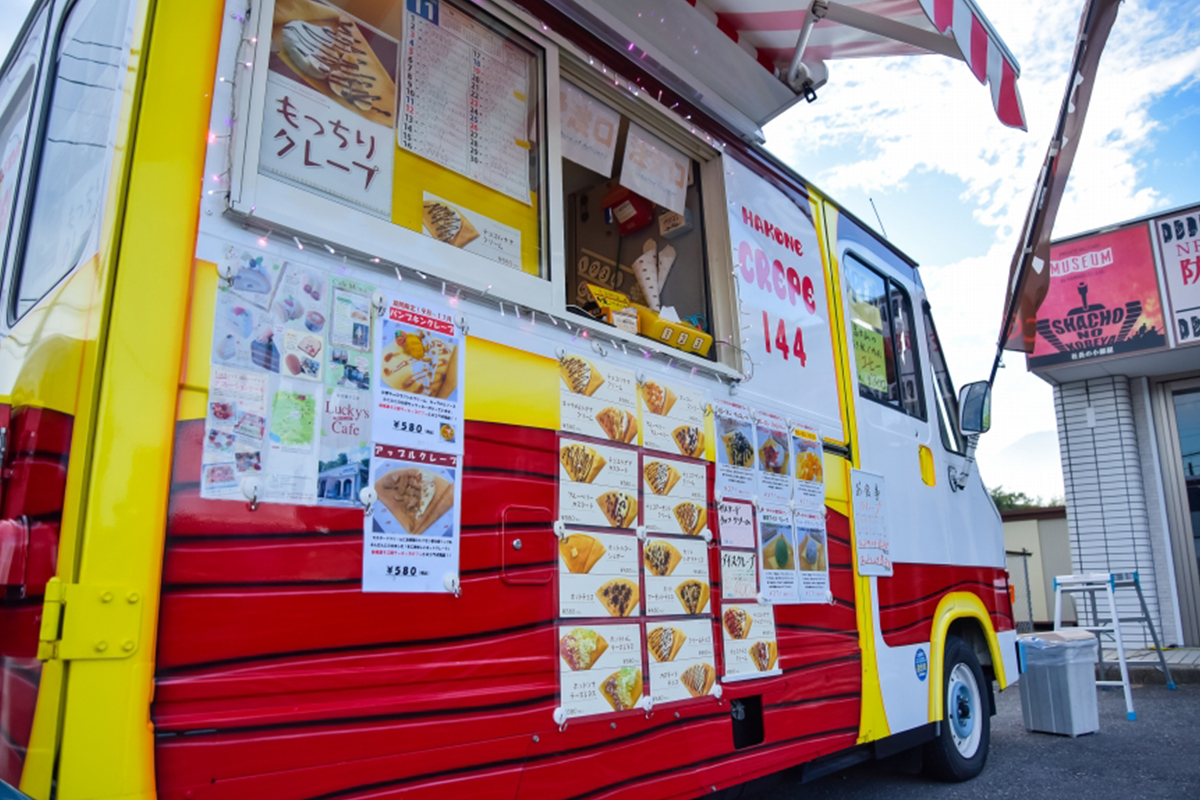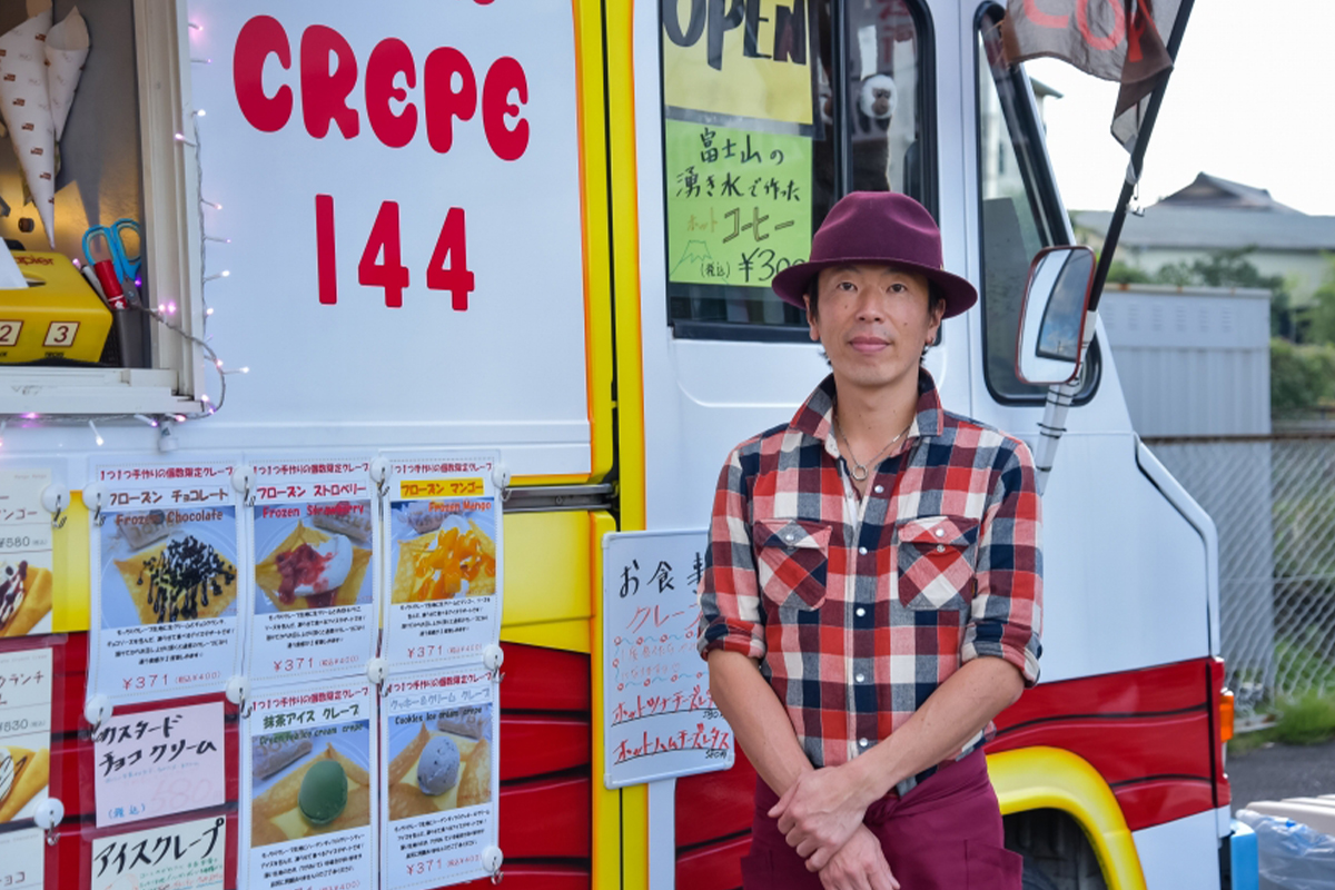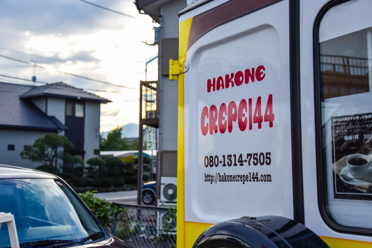 毎週木曜に南御殿場駅、カマド自動車社長の小部屋前に出店中の移動販売のクレープ店。