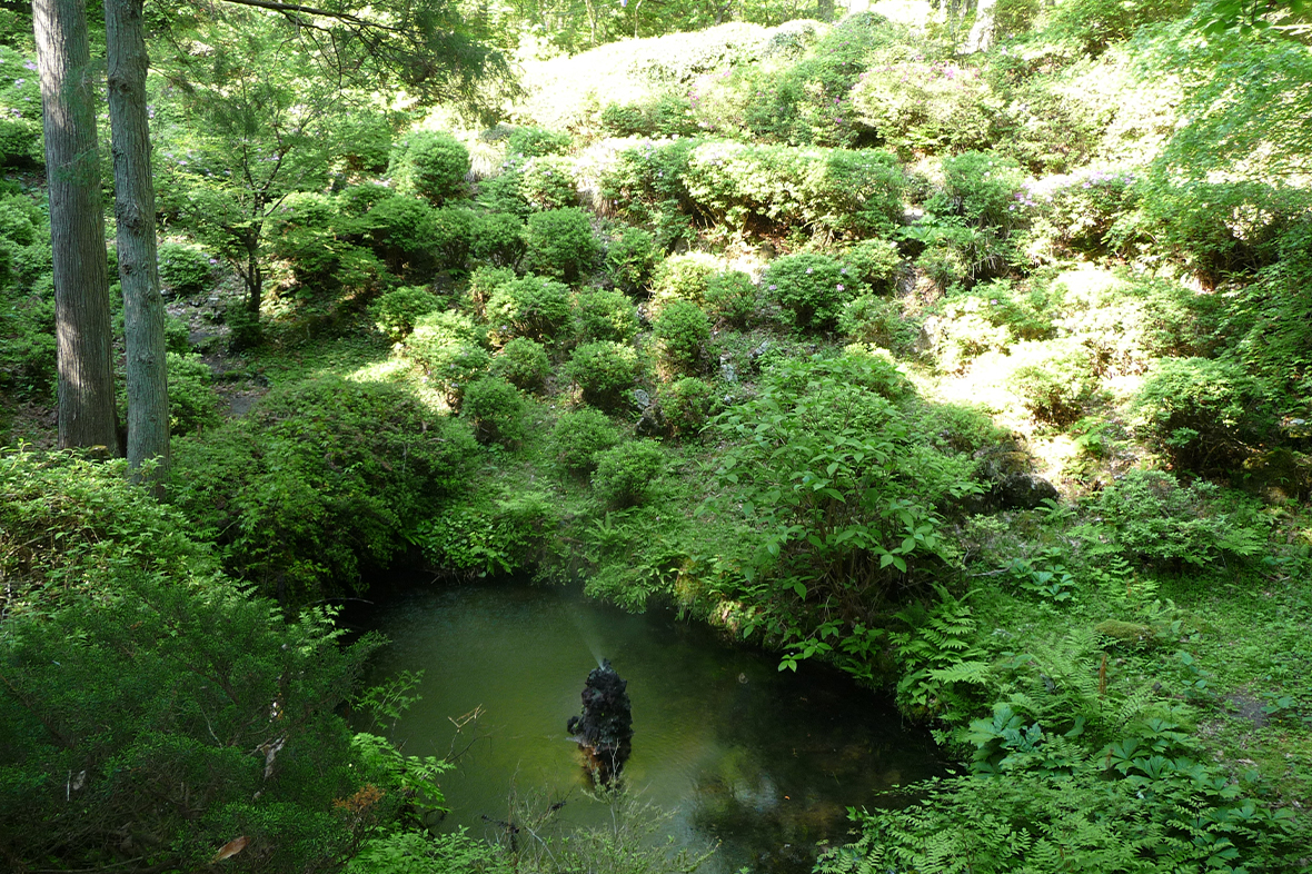 御胎内清宏園は、溶岩地帯の上に樹木が生い茂ってできた森です。