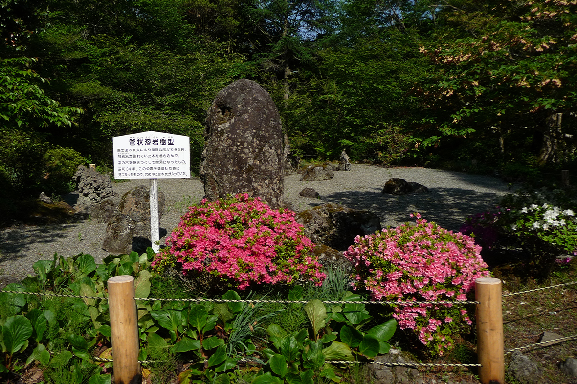 実際に中に入れる全長68mの溶岩隧道があり、その形から人体の内部に見立て「御胎内」と呼ばれています。