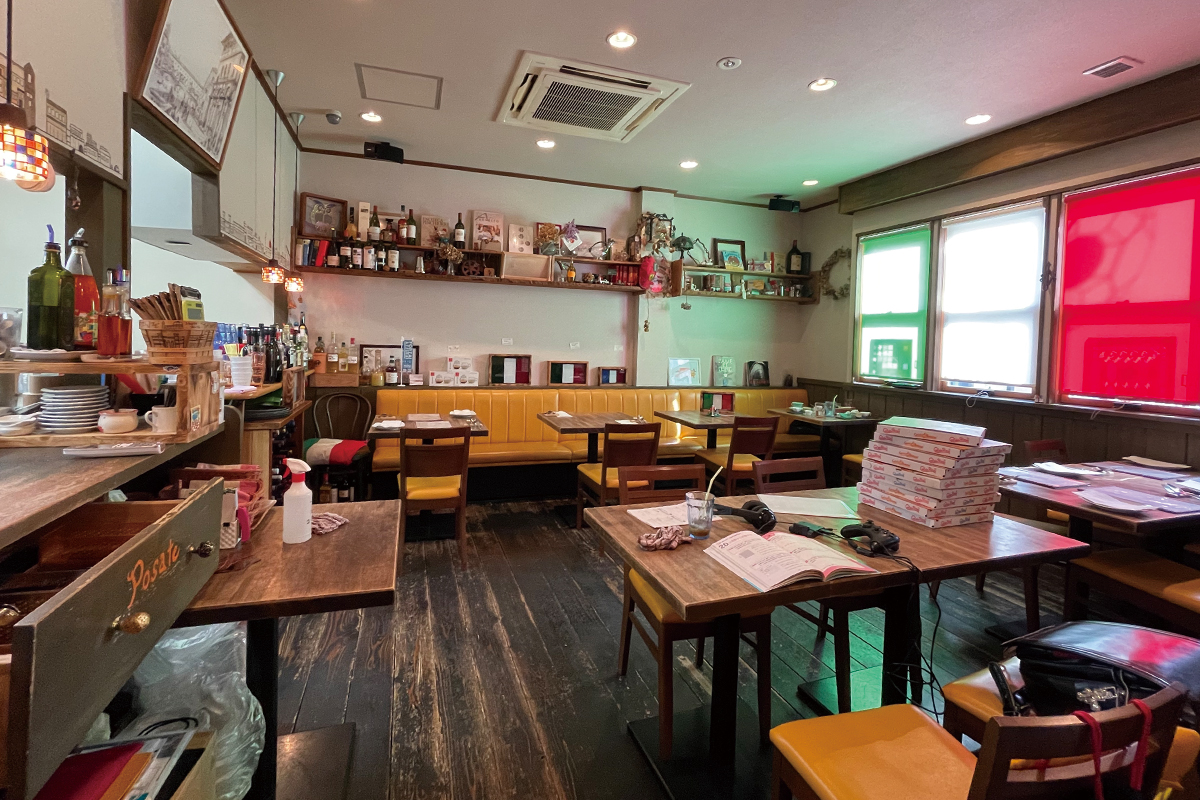 店内にはイタリアから持ち帰ったアイテムが並び、設計もご夫婦自身で手がけたという、開放感のある居心地の良い空間。