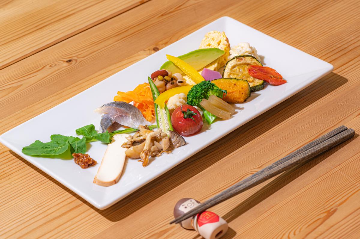地元野菜をふんだんに使った前菜や、シェフ手作りのデザートなど、体にやさしいメニューが揃っています。