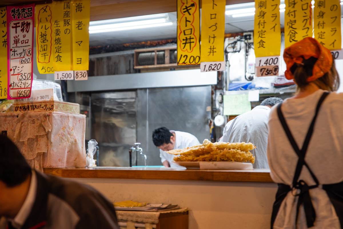 座布団のような大きなかき揚げが2枚のったかき揚げ丼はインパクト大